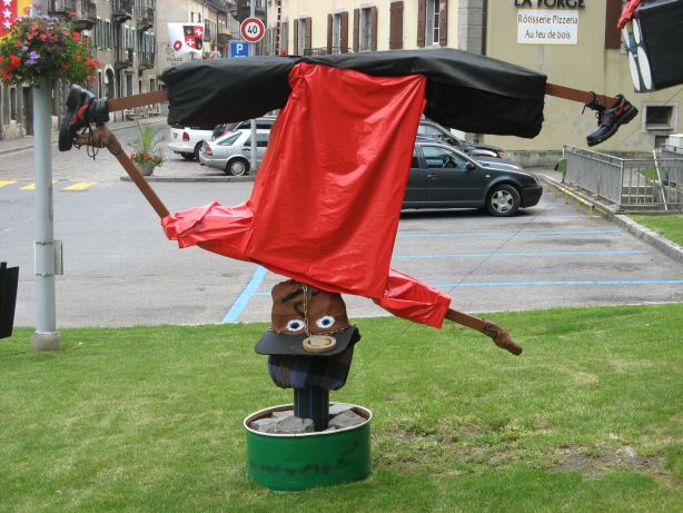 Die Bewohner des Städtchens St-Maurice am Genfersee geben das gleich mit mehreren Figuren kund. Hier zwei davon.