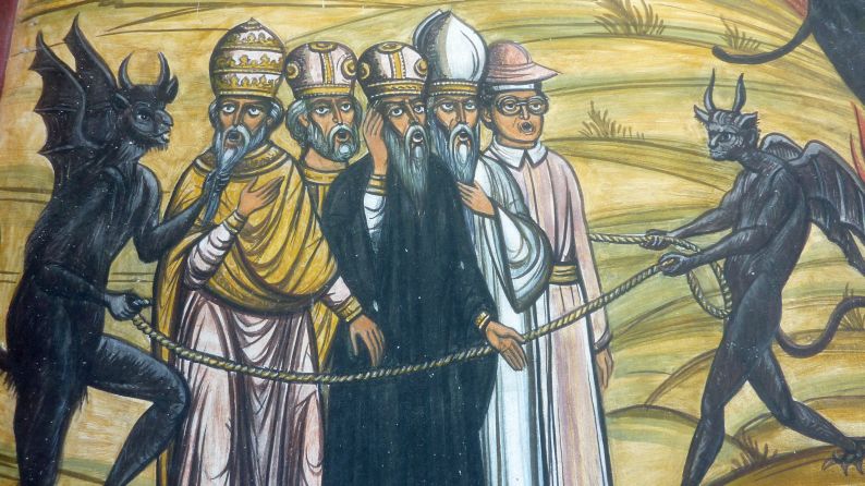 Die noch heute offizielle Formel der feierlichen Exkommunikation nach dem Pontificale Romanum bestätigt diese Verbindung der sich vom christlichen Glauben Abwendenden mit dem Teufel ausdrücklich: „Weil N. N. unter dem Einfluß des Teufels vom christlichen Glauben ... abgefallen ist ..., werde ihm keine Gnade gewährt, er sei verdammt mit dem Teufel und seinen Engeln und allen Verworfenen im ewigen Feuer“ (zit. nach Haag, 1980, S. 125).