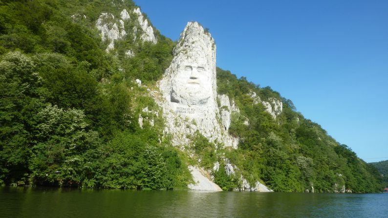 Beim Donaudurchbruch (Rumänien) ist der von Dadaisten in Stein gehauene Decebalus, letzter König der Daker, zu sehen.